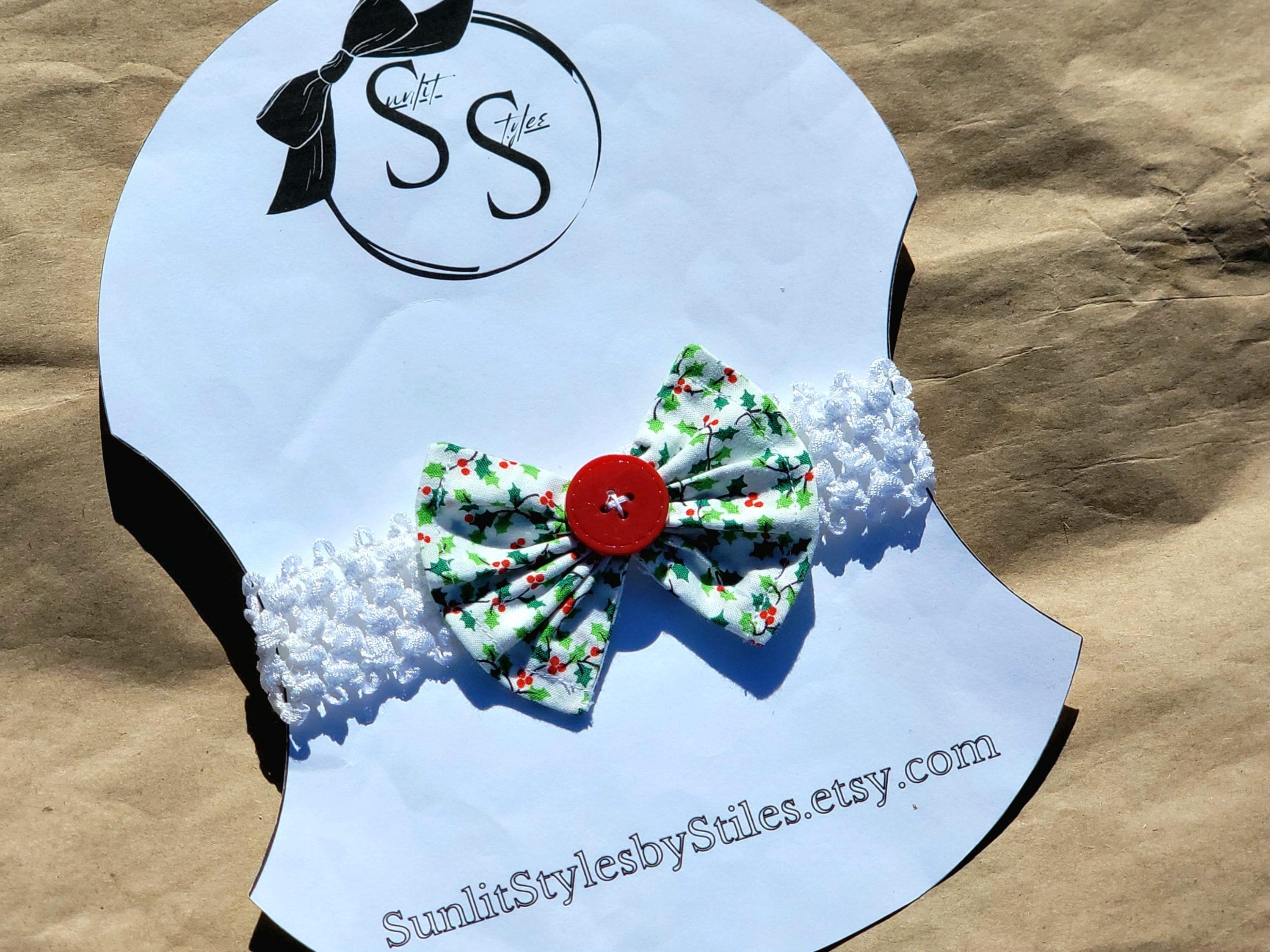Each bow features soft white cotton fabric adorned with classic holly leaves 🌿 and red berries 🍒, evoking cozy winter mornings ❄️ and timeless holiday traditions. Finished with a sweet red button center ❤️, these bows are perfect for Christmas outfits, holiday portraits, and festive family gatherings 📸.