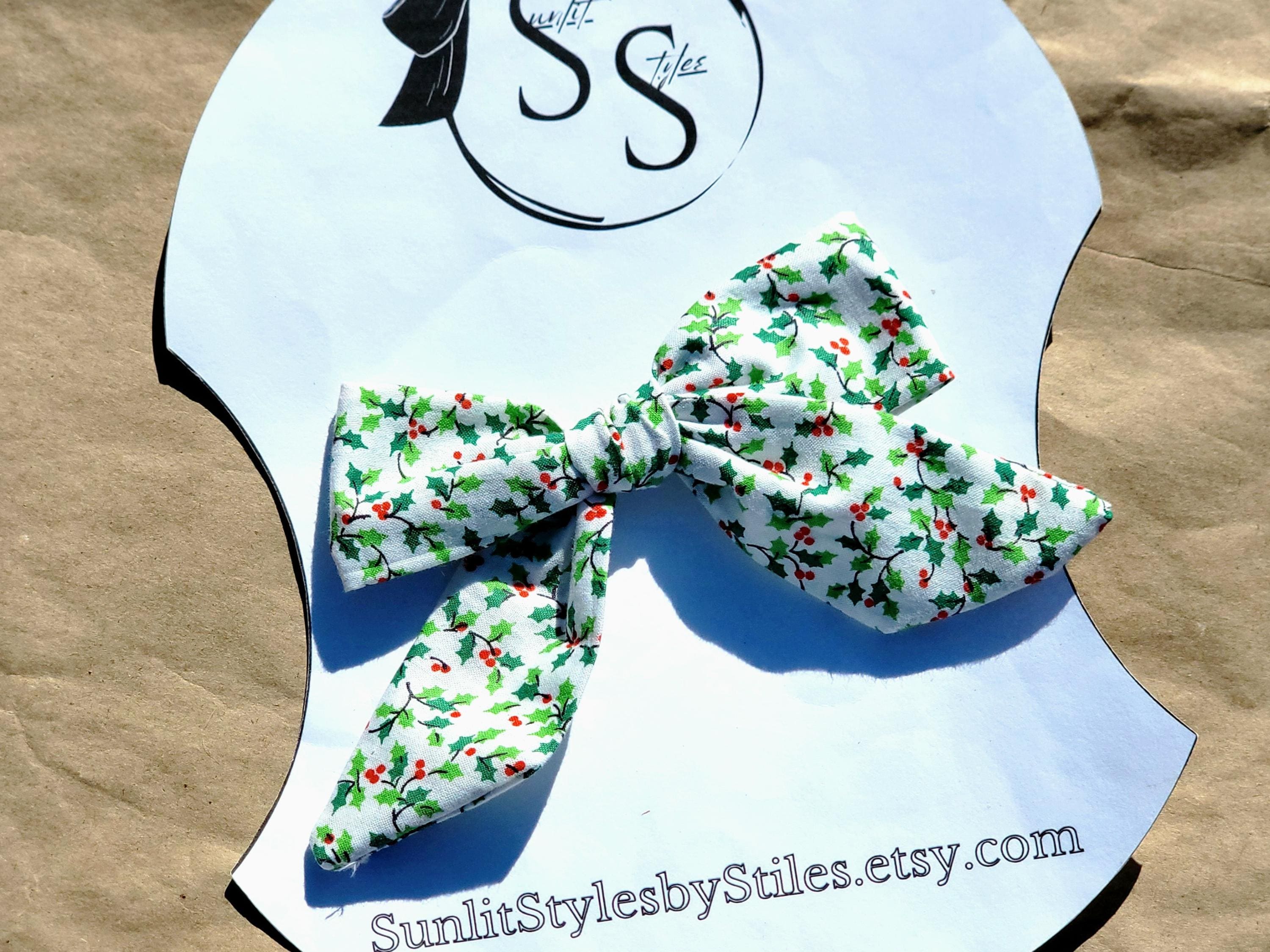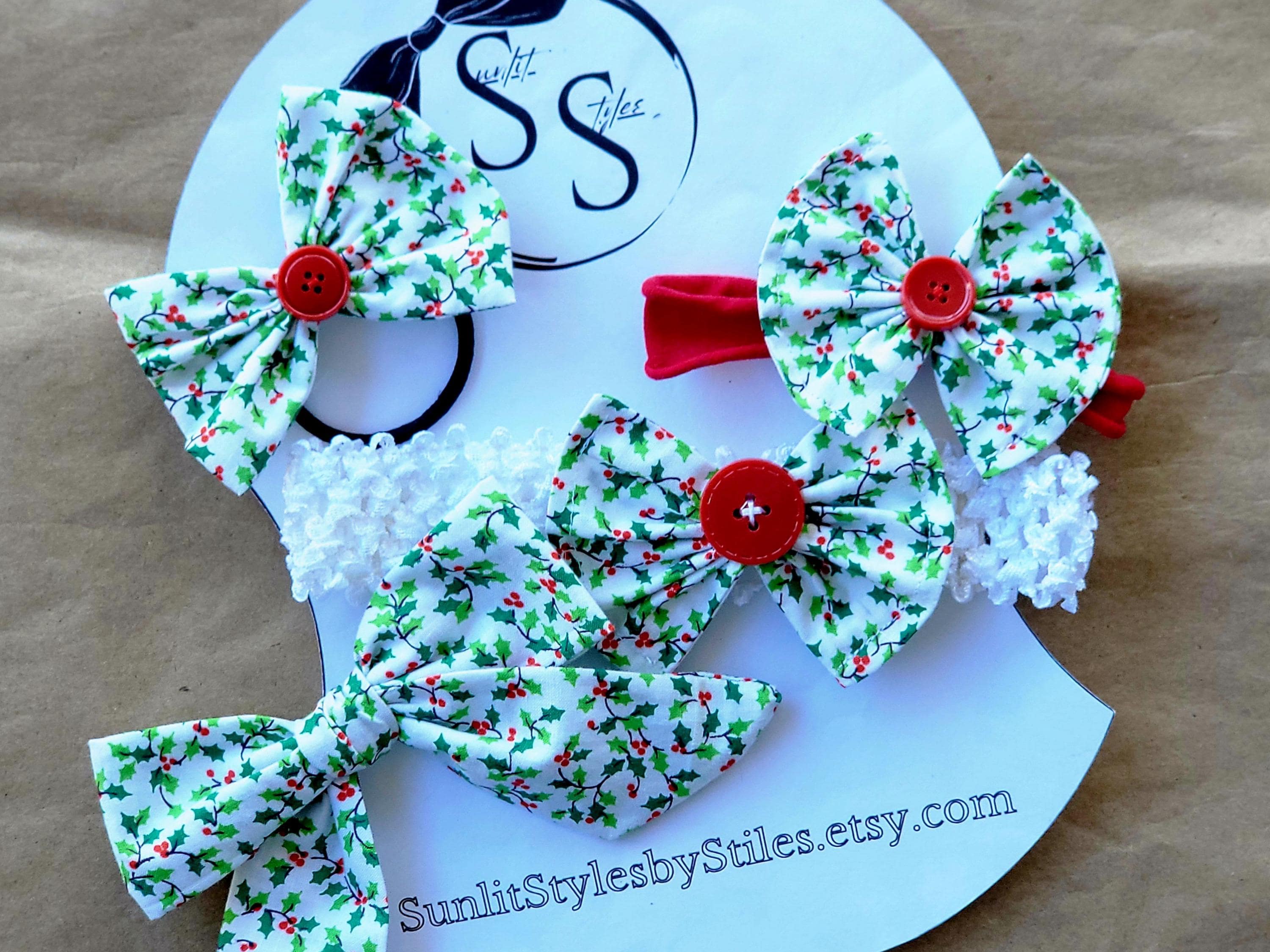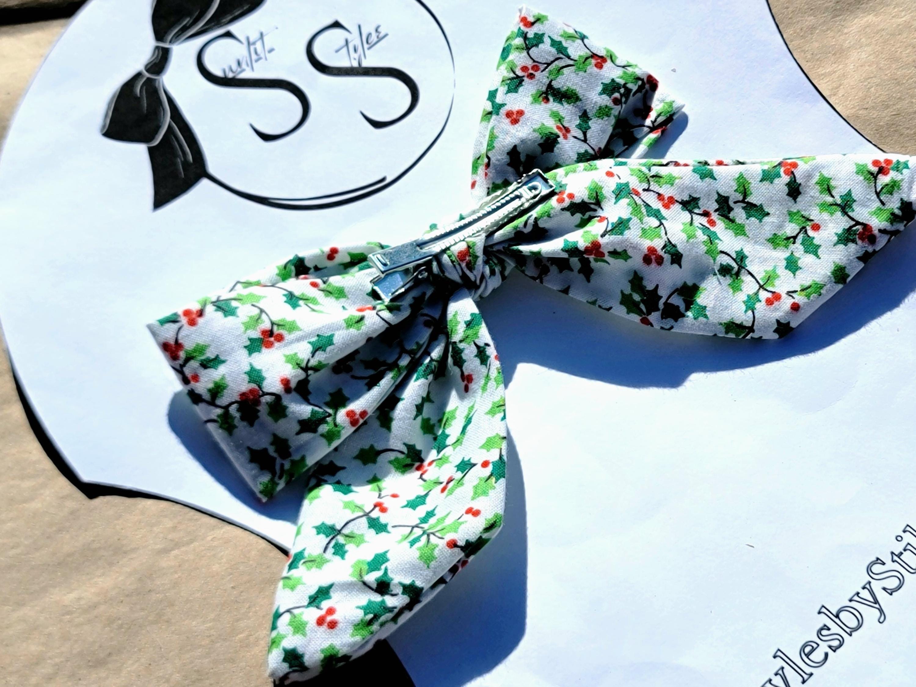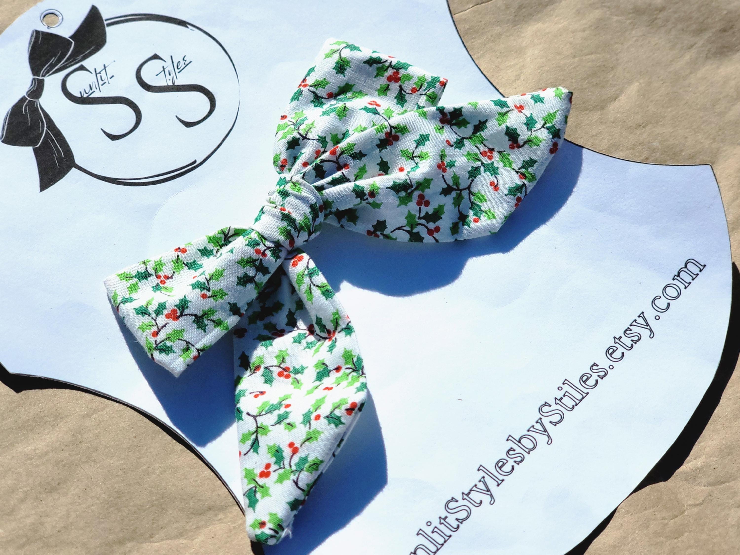 🎁 Festive & Timeless: Holly print and berry accents make these bows perfect for Christmas and winter wear