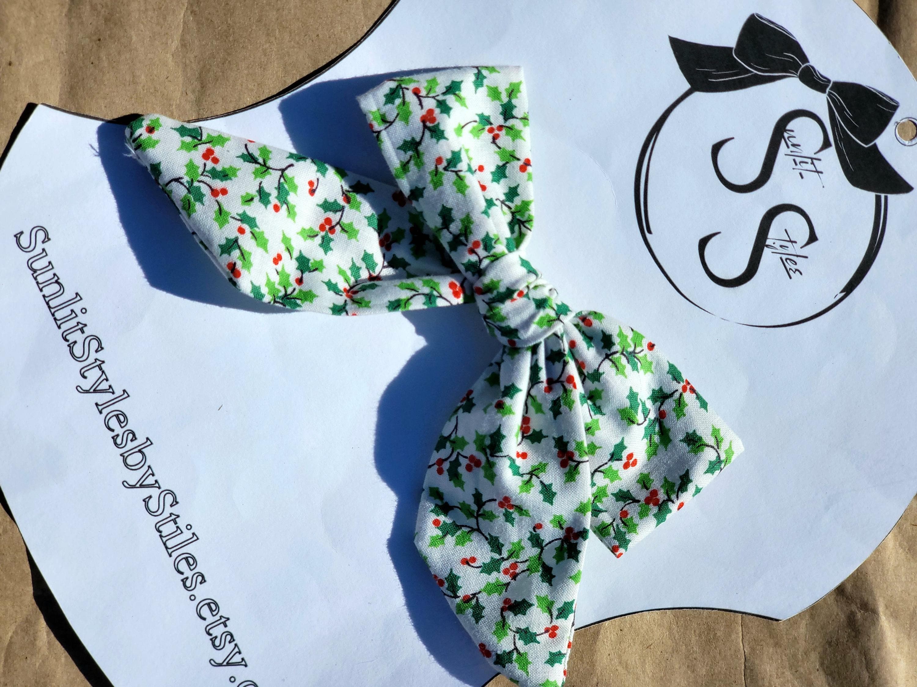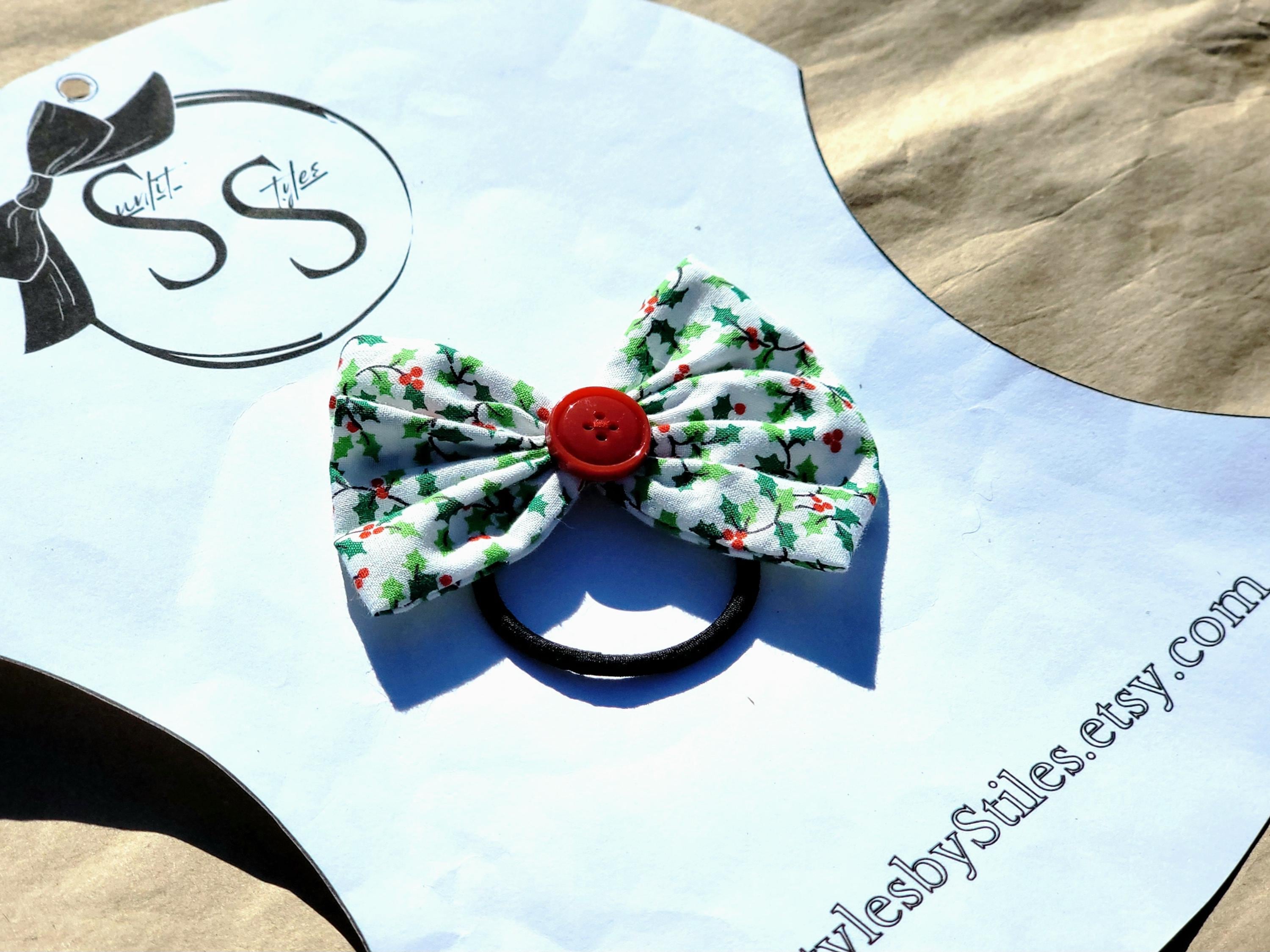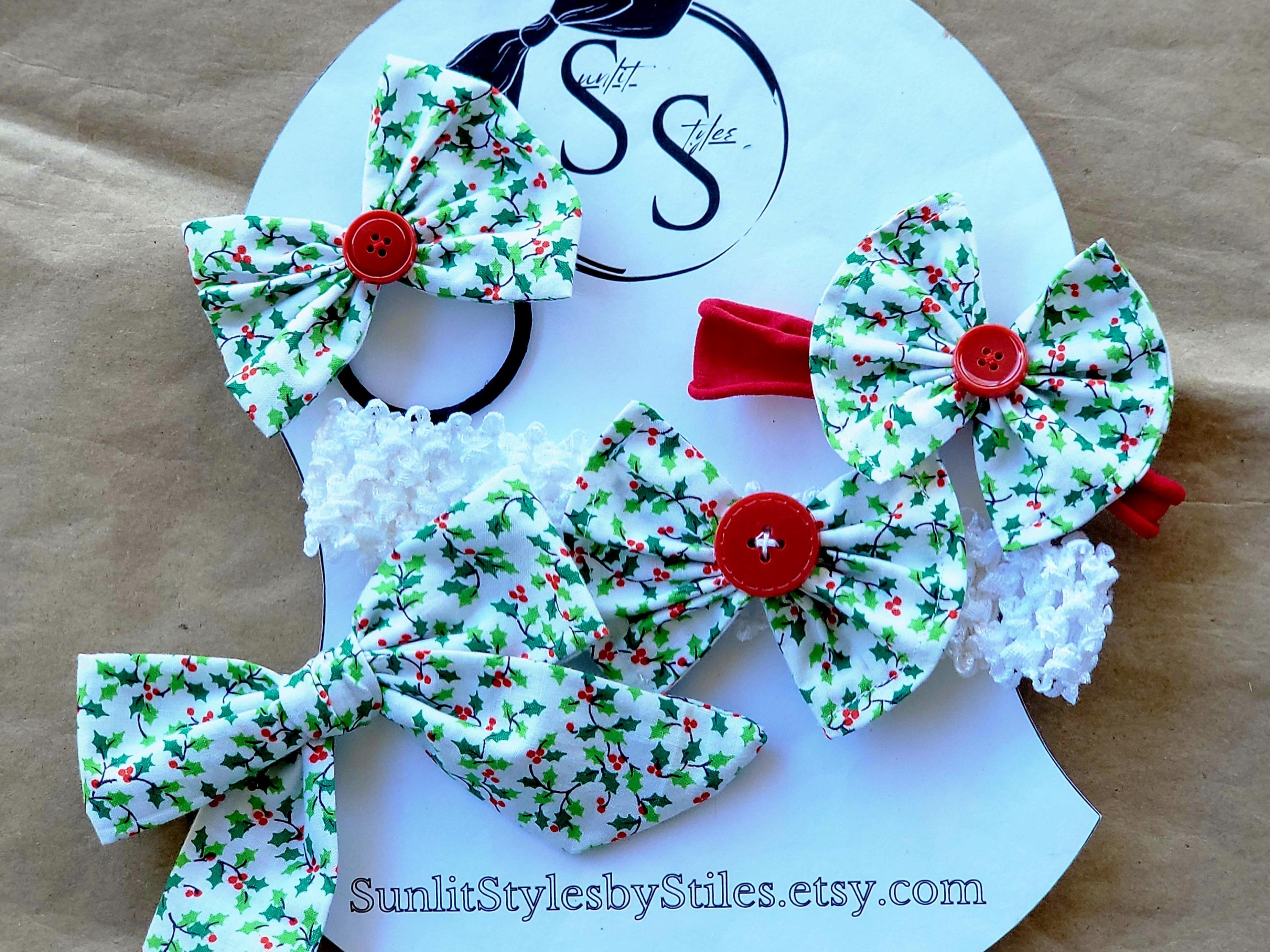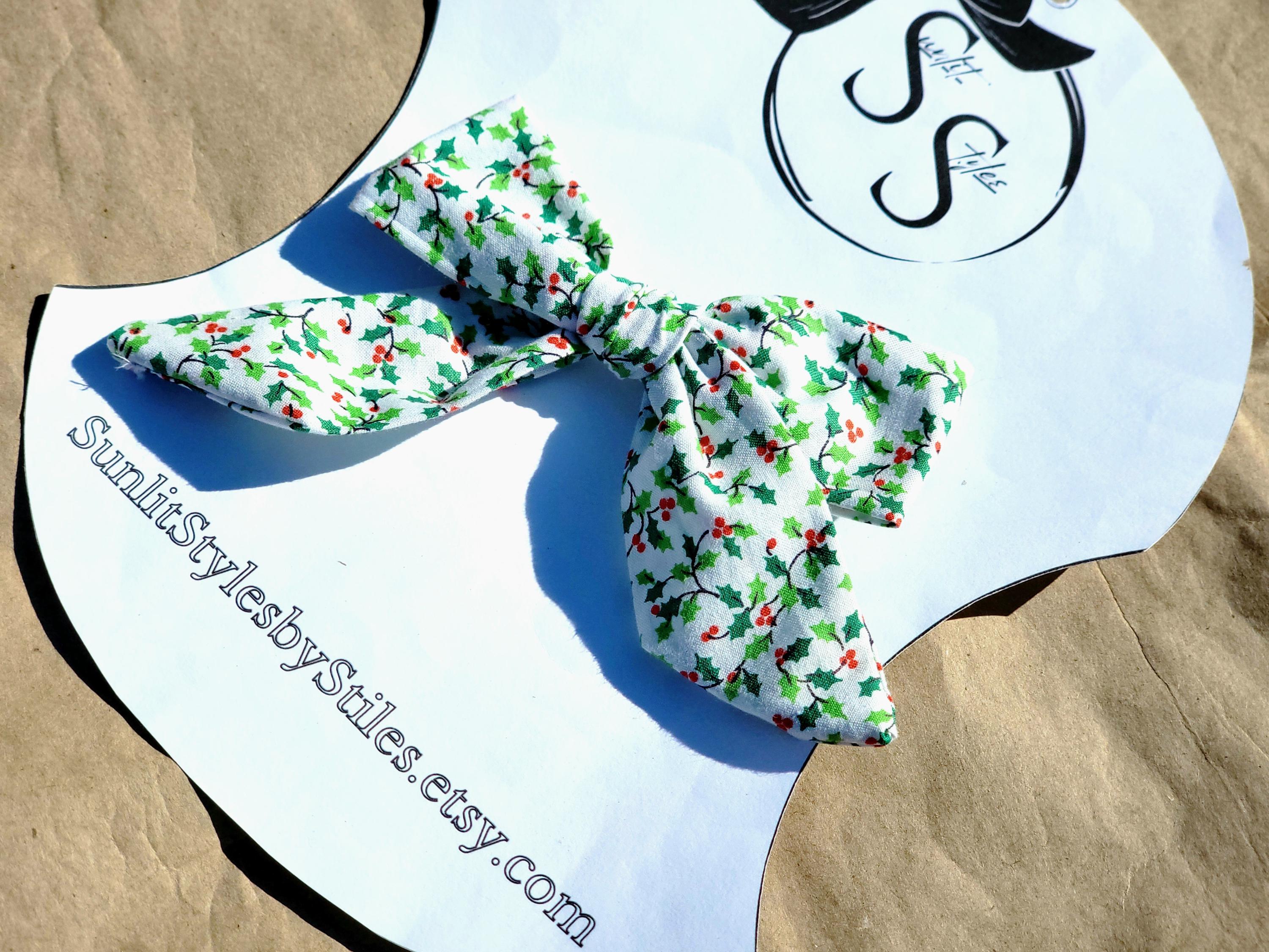 🎁 Festive & Timeless: Holly print and berry accents make these bows perfect for Christmas and winter wear