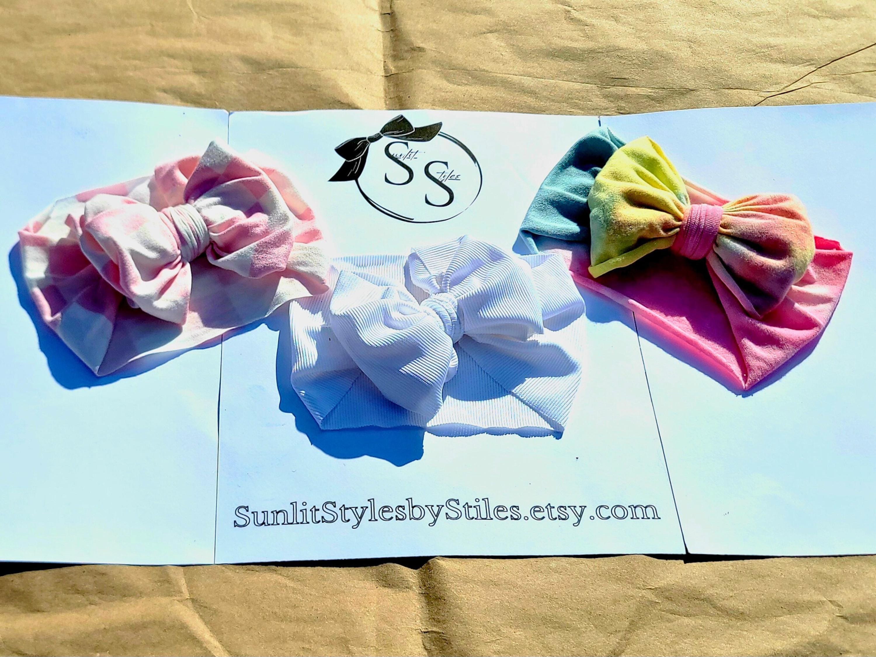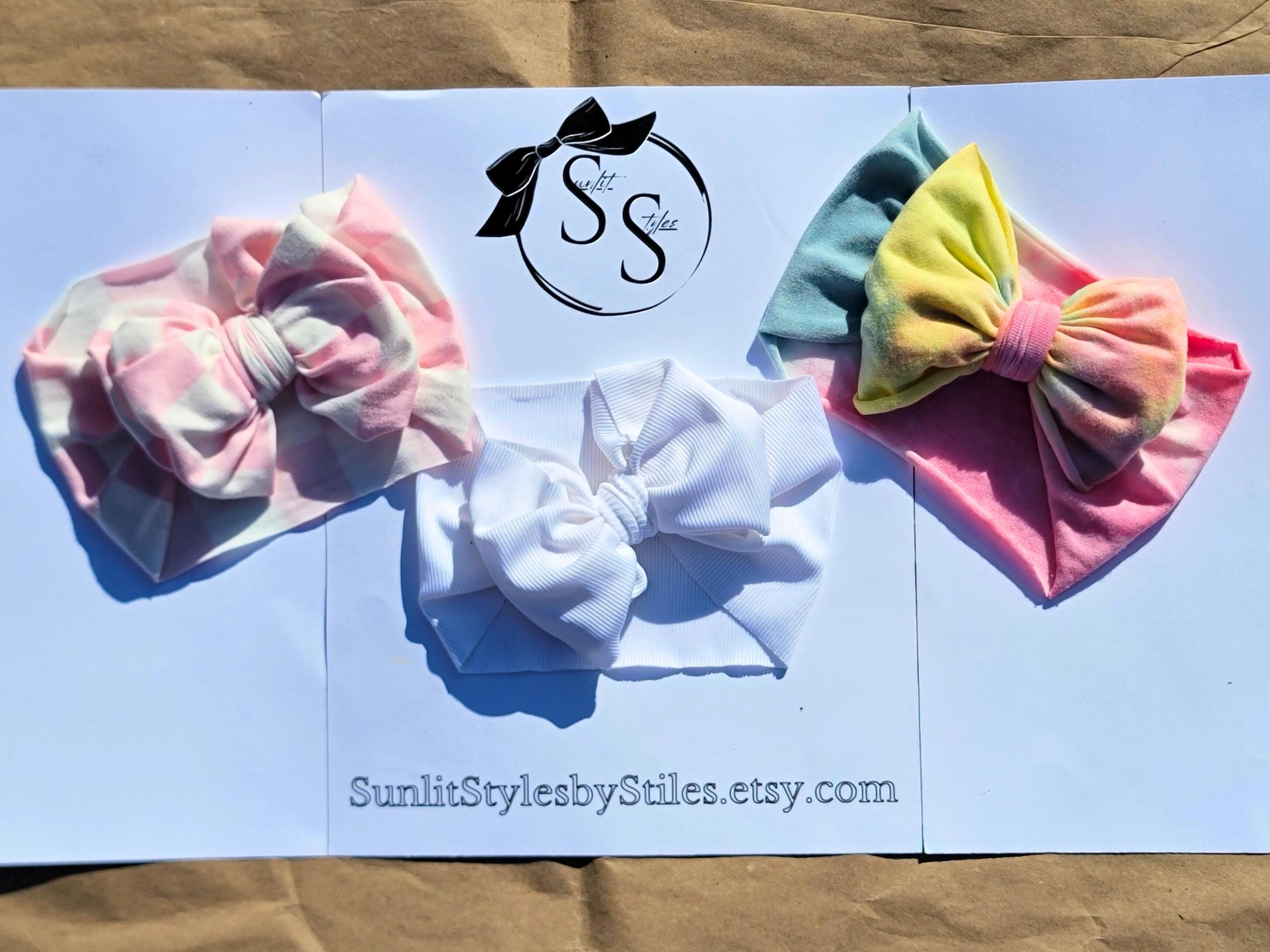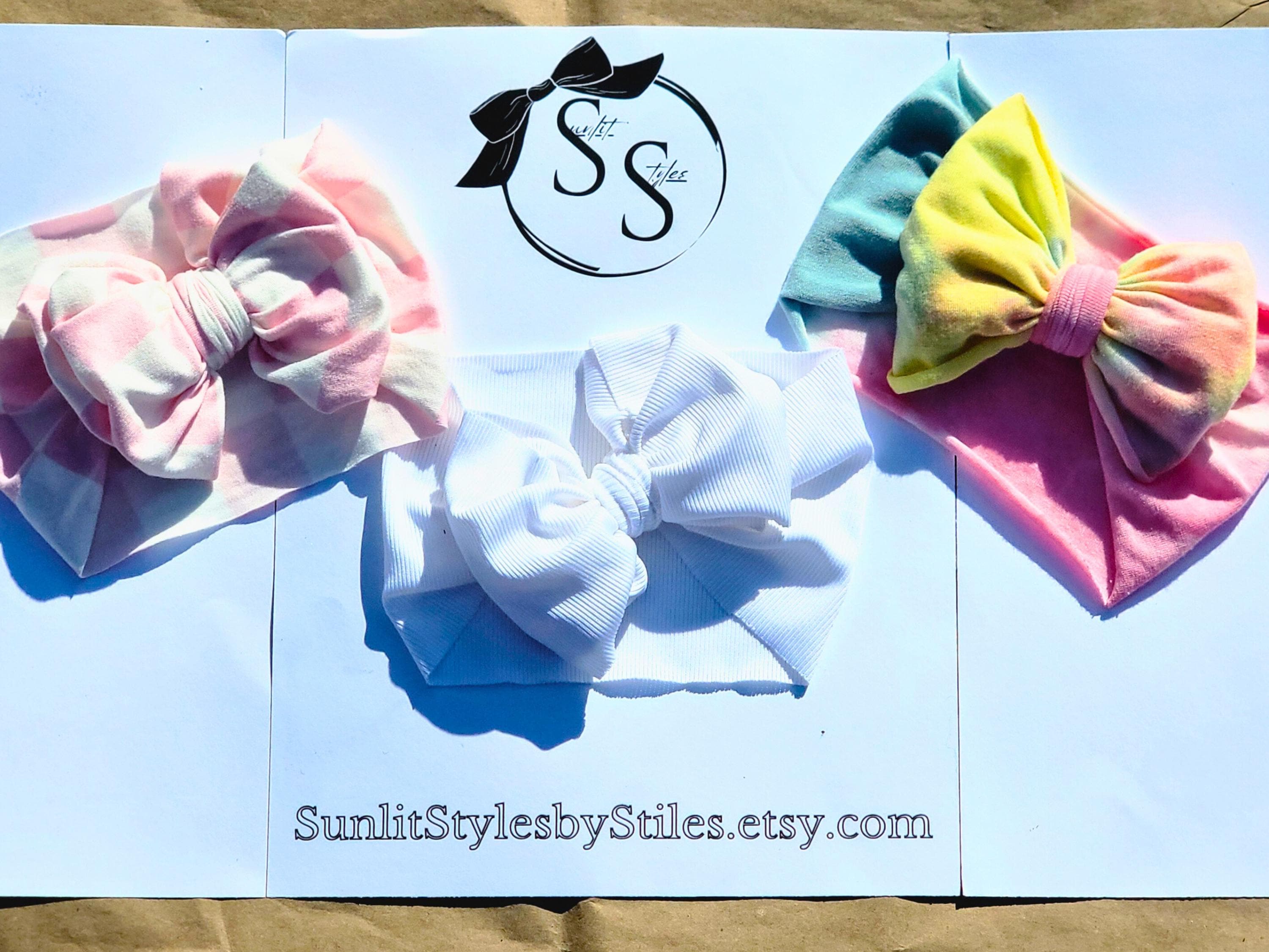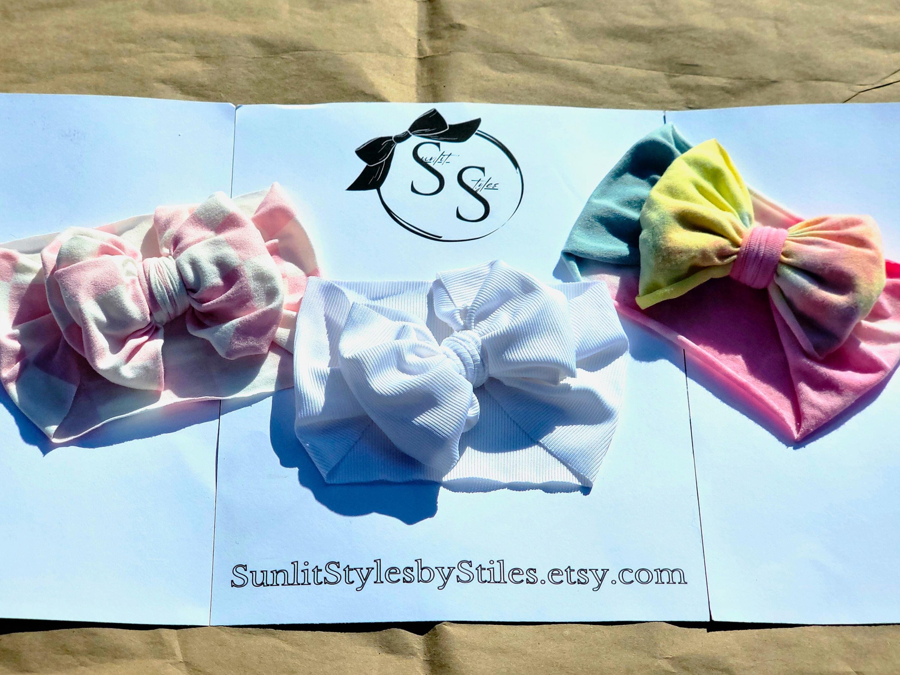 I offer a delightful range of sizes, from tiny, delicate bows perfect for newborns to massive headbands that make a bold fashion statement. No matter the size, each piece is crafted with the same love and attention to detail.