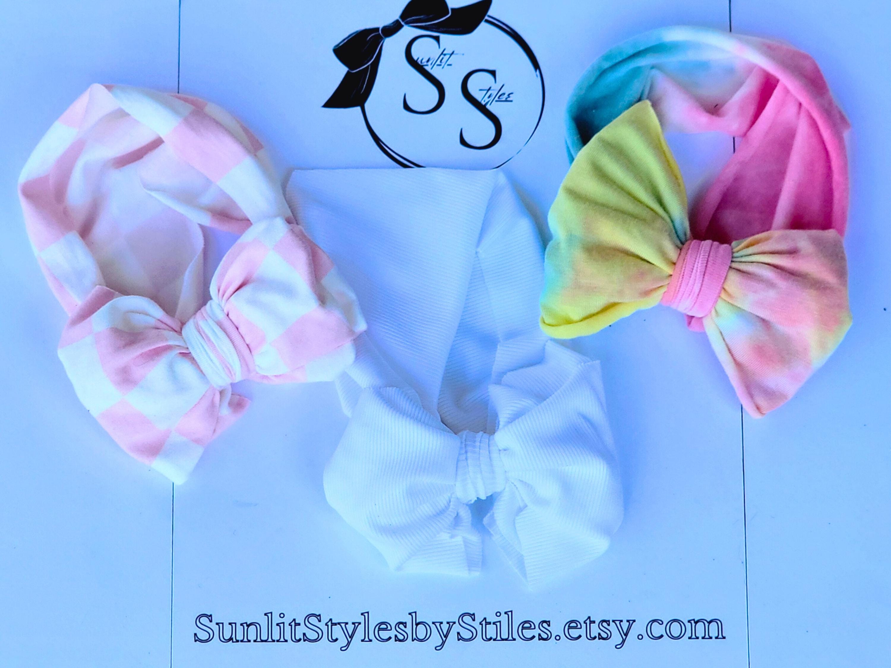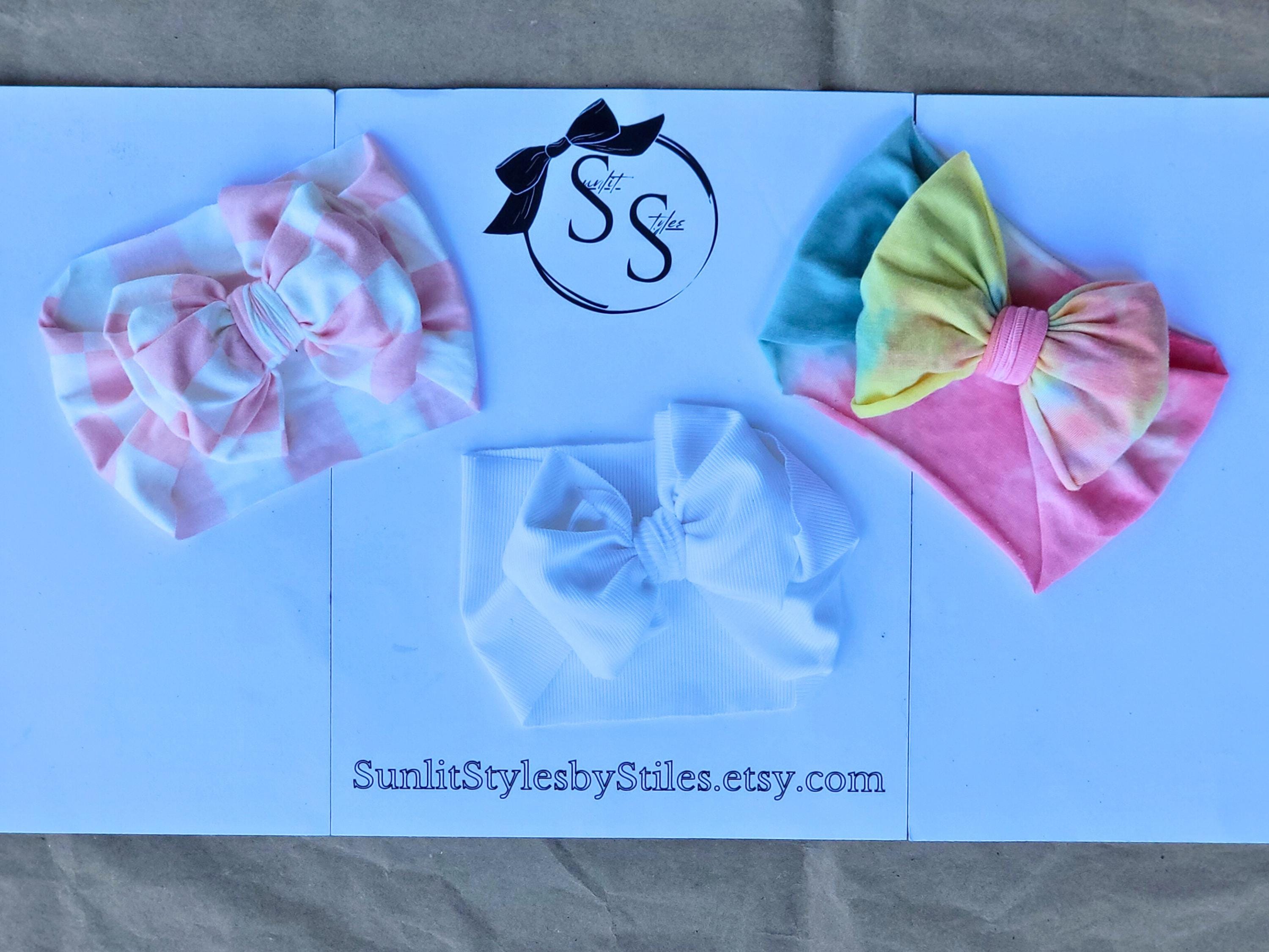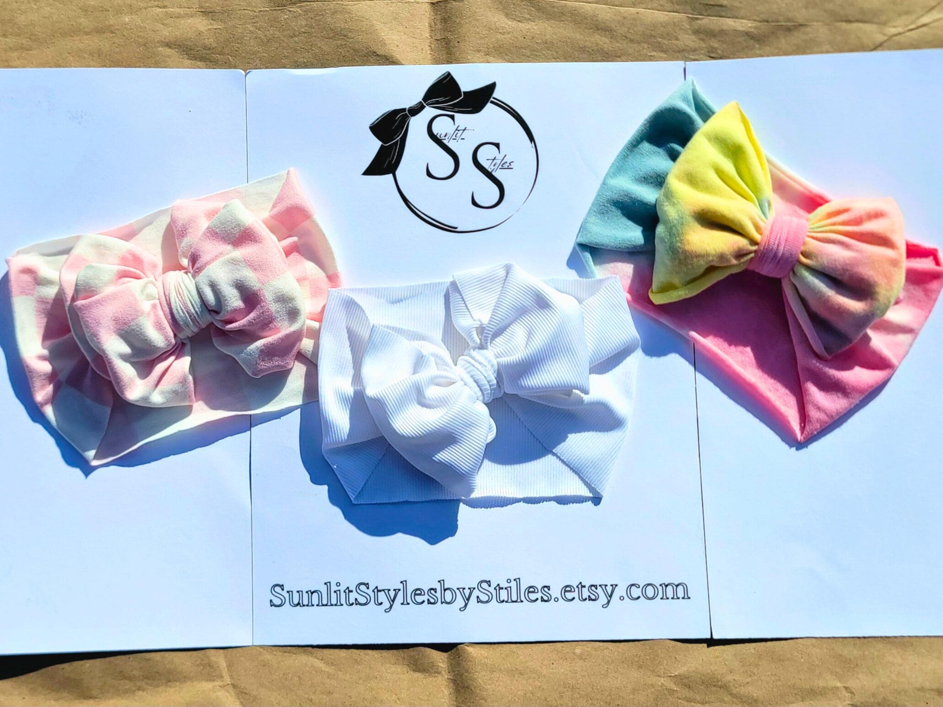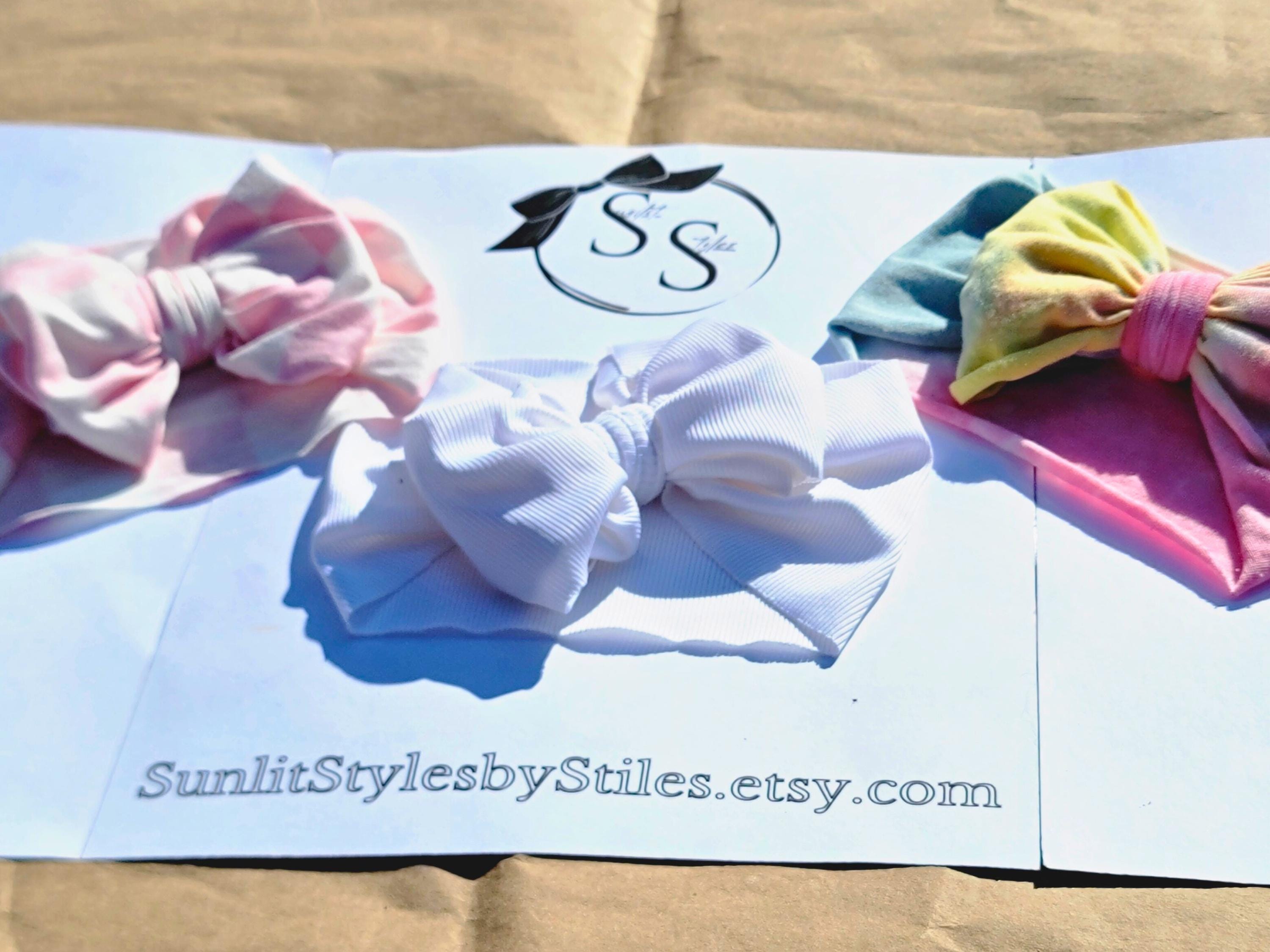 I offer a delightful range of sizes, from tiny, delicate bows perfect for newborns to massive headbands that make a bold fashion statement. No matter the size, each piece is crafted with the same love and attention to detail.